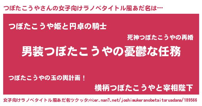 | 男性向けラノベタイトル風あだ名 | 『冴えないつぼたこうやの育てかた』 |