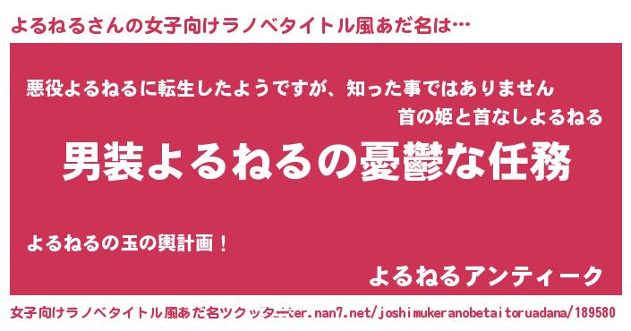 | 意味不明あだ名 | 『住所不定無職よるねる(89歳)』 |