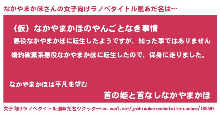 | 胡散臭い通販商品みたいなあだ名 | 『必ず成功するブレスレット…その名も「なかやまかほ」』 |