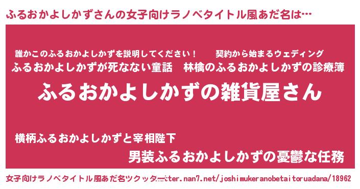 | 男性向けラノベタイトル風あだ名 | 『やはりふるおかよしかずの青春ラブコメはまちがっている 』 |