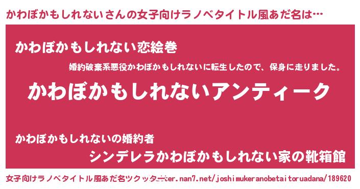| 意味不明あだ名 | 『自称かわぼかもしれない』 |