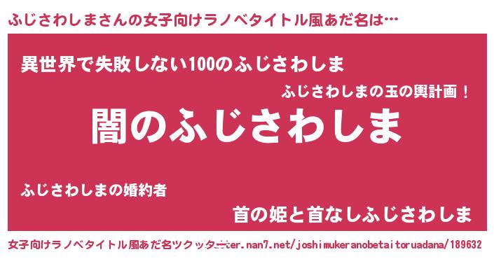 | 男性向けラノベタイトル風あだ名 | 『Re:ふじさわしまから始める異世界生活』 |
