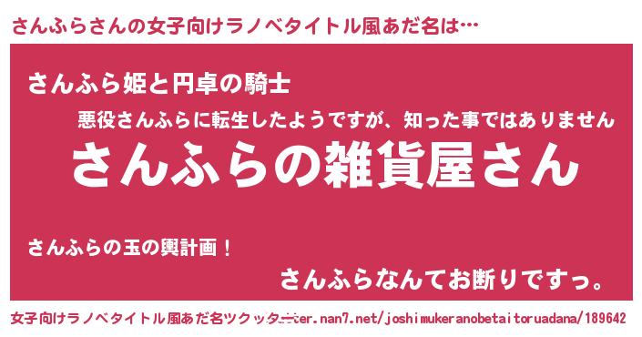 | 肩書あだ名 | 『さんふら国家主席』『さんふら社長』 |