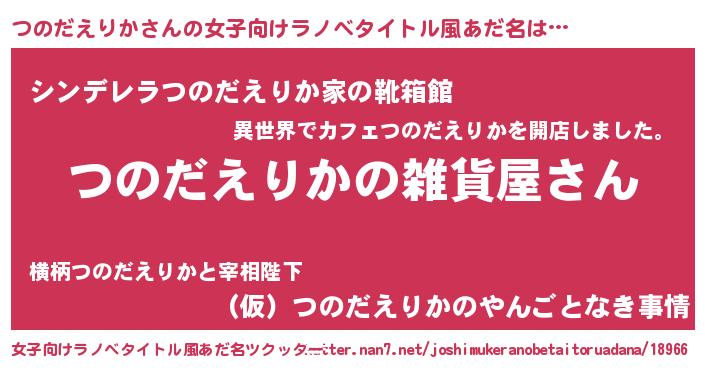 | 男性向けラノベタイトル風あだ名 | 『やはりつのだえりかの青春ラブコメはまちがっている 』 |