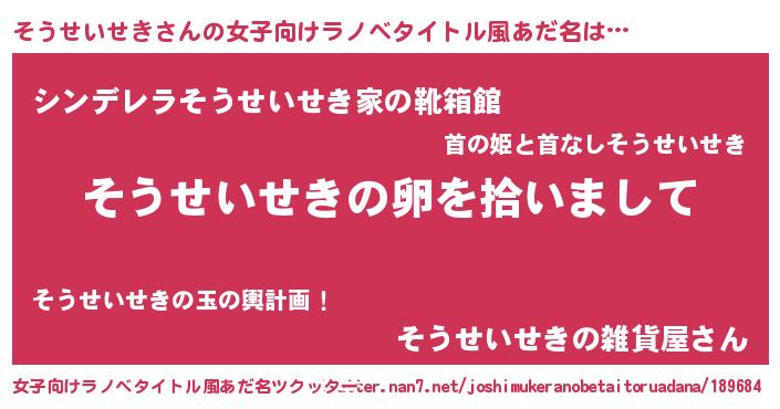 | 胡散臭い通販商品みたいなあだ名 | 『伝統あるサプリメント…その名も「そうせいせき」』 |