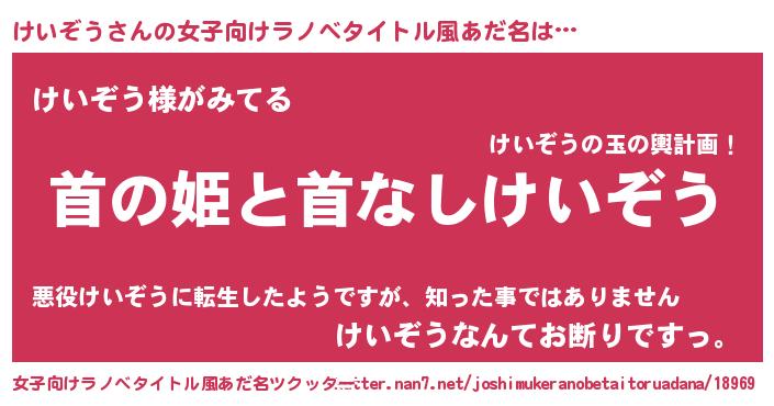 | 男性向けラノベタイトル風あだ名 | 『はたらくけいぞうさま!』 |