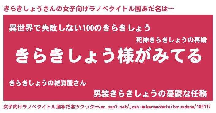 | 意味不明あだ名 | 『とにかく怪しいきらきしょう』 |