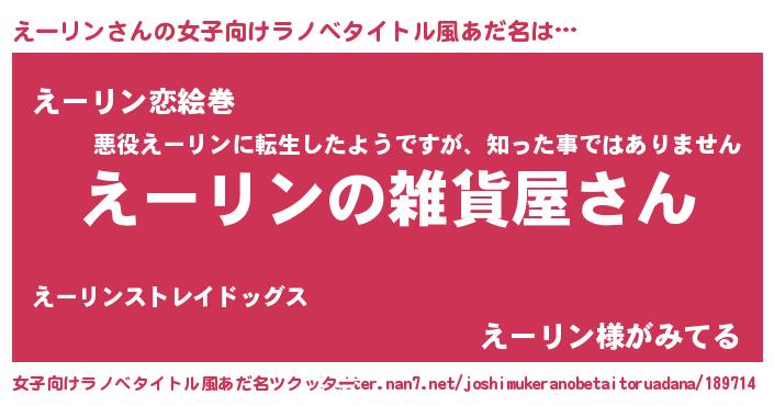 | 男性向けラノベタイトル風あだ名 | 『やはりえーリンの青春ラブコメはまちがっている 』 |