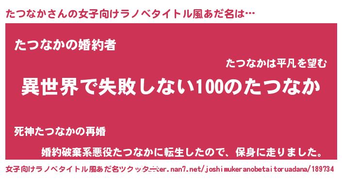 | 男性向けラノベタイトル風あだ名 | 『たつなかという概念が存在しない退屈な世界 』 |