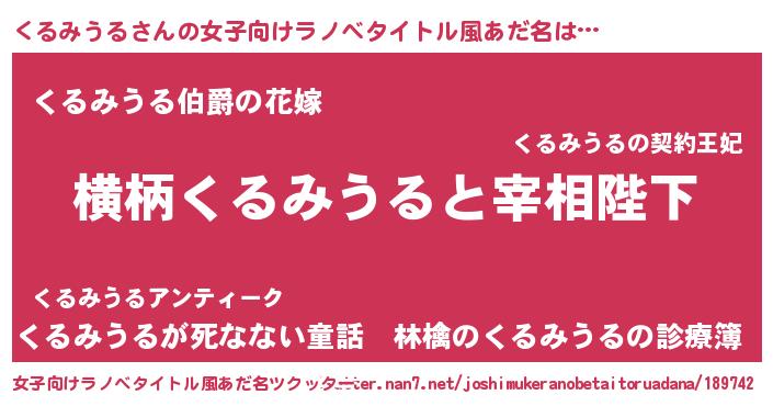 | 男性向けラノベタイトル風あだ名 | 『くるみうるに滅ぼされるだけの簡単なお仕事です』 |