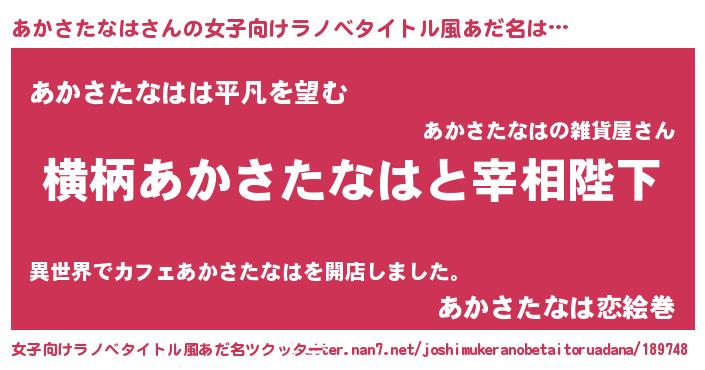 | 男性向けラノベタイトル風あだ名 | 『あかさたなはに滅ぼされるだけの簡単なお仕事です』 |