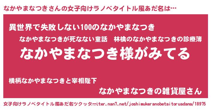 | 男性向けラノベタイトル風あだ名 | 『なかやまなつきの嫁は女の子じゃないと思った?』 |