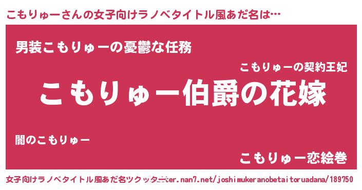 | ファンタジー風あだ名 | 『エターナルコモリューー』『ゼコモトゥ』 |