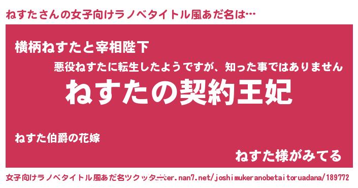| 男性向けラノベタイトル風あだ名 | 『ねすたという概念が存在しない退屈な世界 』 |