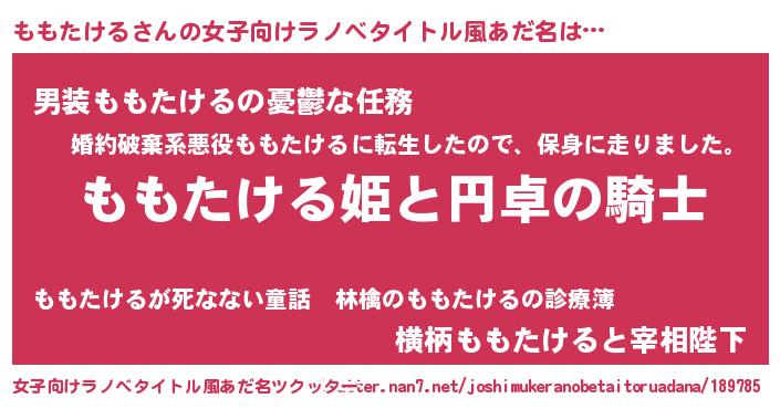| 胡散臭い通販商品みたいなあだ名 | 『モテモテ間違いなし水晶球…その名も「ももたける」』 |