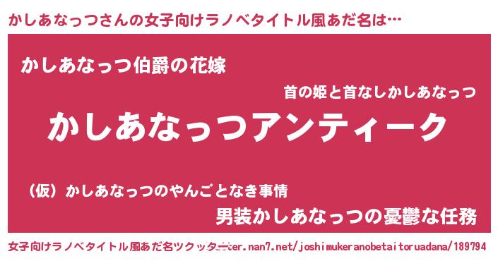 | 意味不明あだ名 | 『自称かしあなっつ』 |