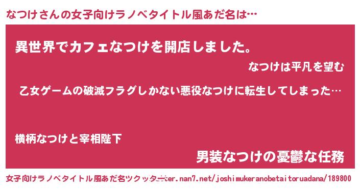 | 意味不明あだ名 | 『住所不定無職なつけ(10歳)』『自称なつけ』 |