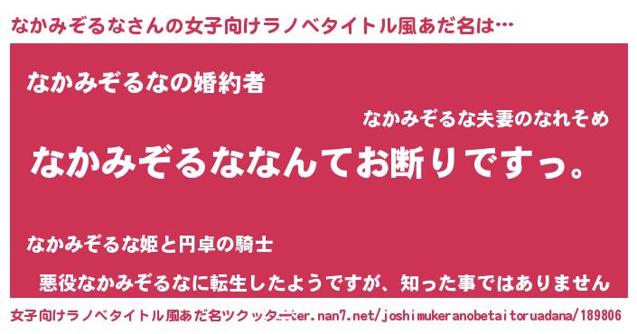 | 意味不明あだ名 | 『自称なかみぞるな』 |