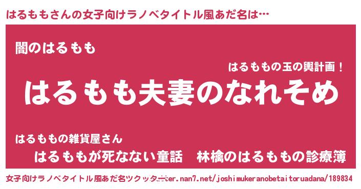 | 男性向けラノベタイトル風あだ名 | 『おまえをオタクにしてやるから、俺をはるももにしてくれ! 』 |
