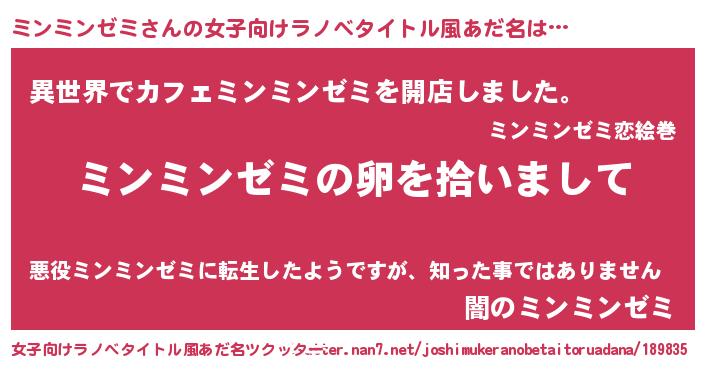 | 胡散臭い通販商品みたいなあだ名 | 『伝統あるサプリメント…その名も「ミンミンゼミ」』 |