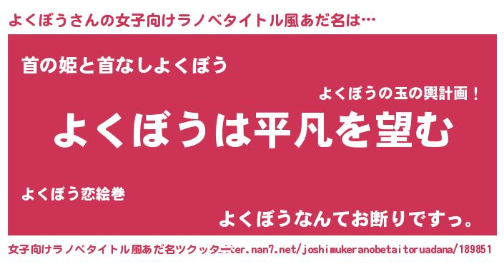 | ヒーロー風カッコイイあだ名 | 『暗黒騎士ヨク』『超時空戦士ヨクボウ』 |