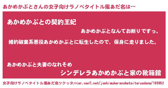 | 胡散臭い通販商品みたいなあだ名 | 『絶対に幸福をもたらす水素水…その名も「あかめかぶと」』 |