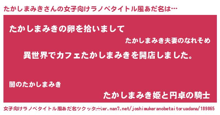 | 胡散臭い通販商品みたいなあだ名 | 『前代未聞の健康食品…その名も「たかしまみき」』 |