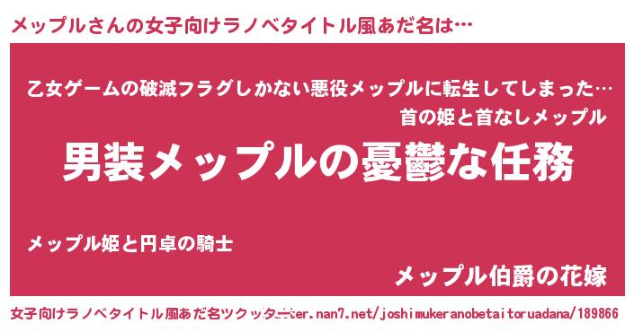 | 胡散臭い通販商品みたいなあだ名 | 『世界中を虜にした100年もののヴィンテージワイン…その名も「メップル」』 |