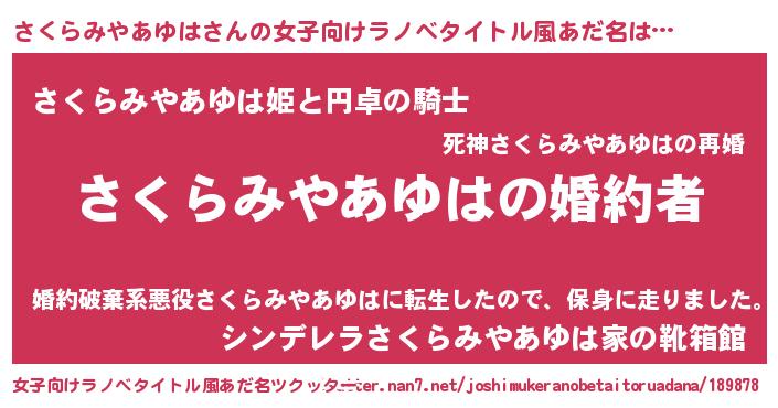 | 胡散臭い通販商品みたいなあだ名 | 『運命の人と巡り会える高級そうな壺…その名も「さくらみやあゆは」』 |