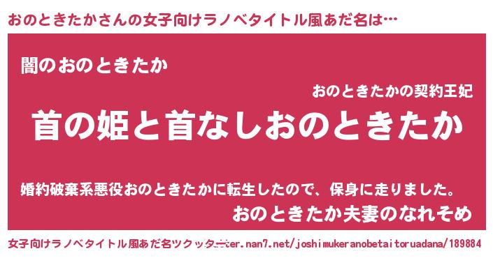 | 意味不明あだ名 | 『自称おのときたか』 |