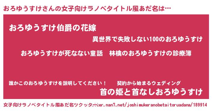 | 男性向けラノベタイトル風あだ名 | 『魔弾の王とおろゆうすけ』 |