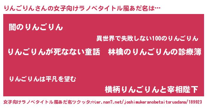 | 男性向けラノベタイトル風あだ名 | 『魔弾の王とりんごりん』 |