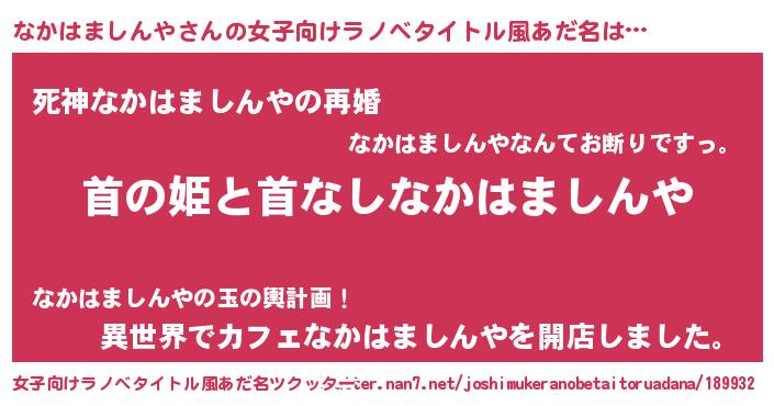 | 男性向けラノベタイトル風あだ名 | 『はたらくなかはましんやさま!』 |