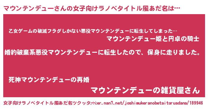 | 男性向けラノベタイトル風あだ名 | 『マウンテンデュースレイヤー』 |