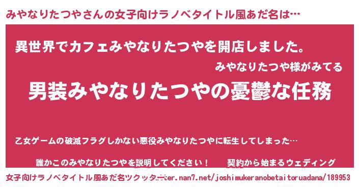 | 男性向けラノベタイトル風あだ名 | 『うちのみやなりたつやが世界を掌握している!』 |