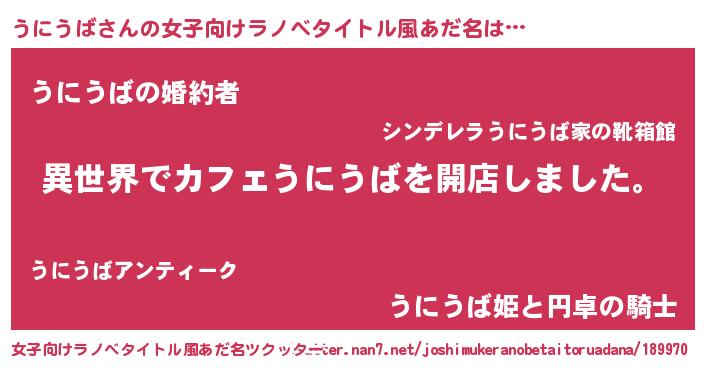 | 胡散臭い通販商品みたいなあだ名 | 『前代未聞の健康食品…その名も「うにうば」』 |