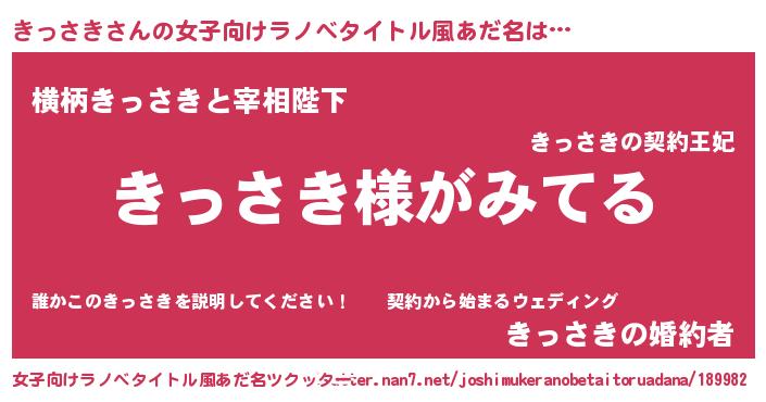 | 男性向けラノベタイトル風あだ名 | 『きっさきの嫁は女の子じゃないと思った?』 |