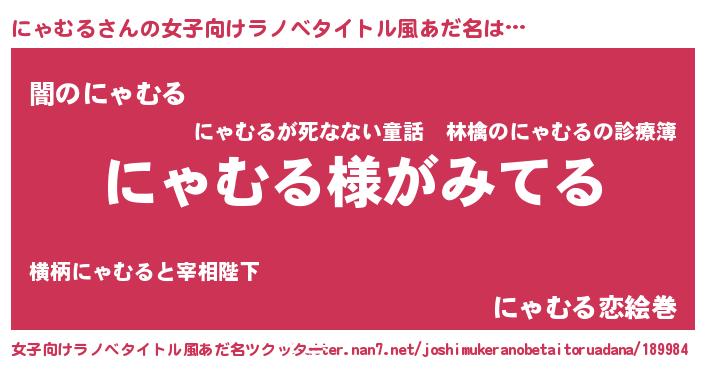 | 意味不明あだ名 | 『とにかく怪しいにゃむる』 |