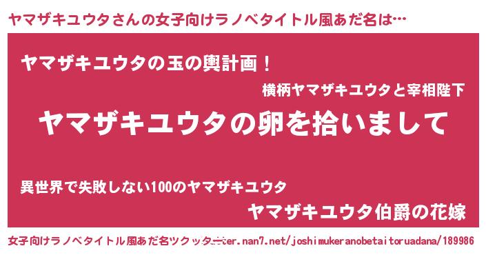 | 男性向けラノベタイトル風あだ名 | 『ヤマザキユウタの嫁は女の子じゃないと思った?』 |