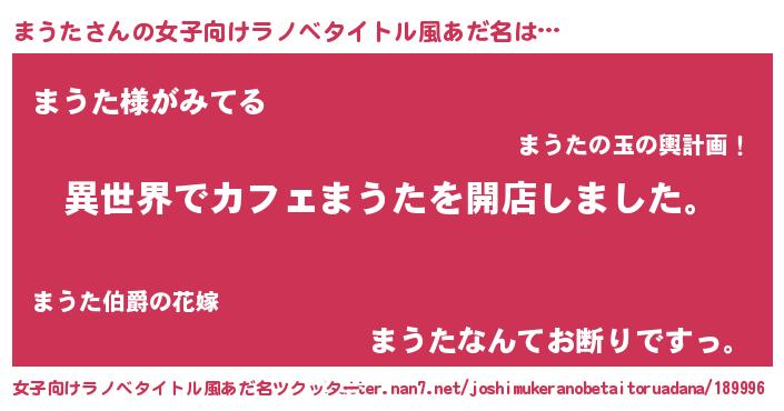| 男性向けラノベタイトル風あだ名 | 『誰もが恐れるあのまうたが、ぼくの専属メイドになるようです。』 |