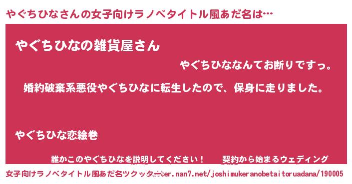 | 男性向けラノベタイトル風あだ名 | 『転生したらやぐちひなだった件』 |