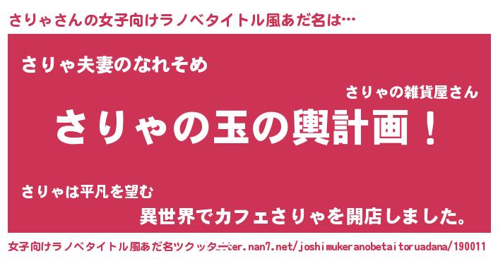 | 男性向けラノベタイトル風あだ名 | 『転生したらさりゃだった件』 |