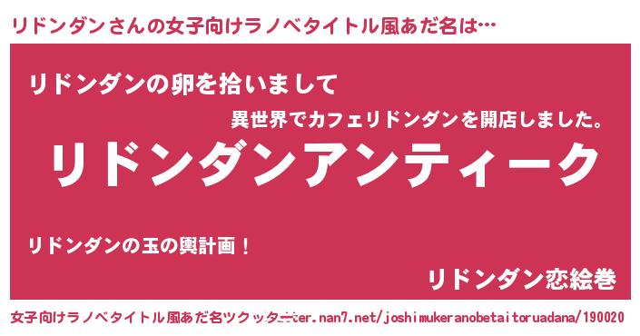 | 男性向けラノベタイトル風あだ名 | 『魔法科高校のリドンダン』 |