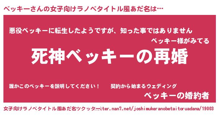 | ヒーロー風カッコイイあだ名 | 『慈愛の使者ベッキー』『仮面ベッダー』 |