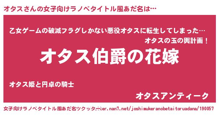 | ファンタジー風あだ名 | 『エターナルオタスー』『ヴァルオターナ』 |
