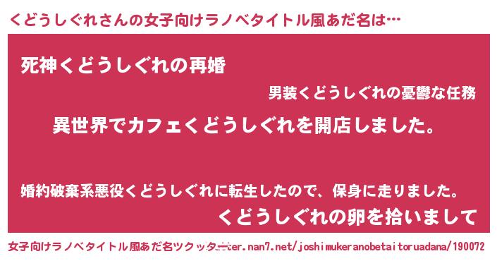 | 男性向けラノベタイトル風あだ名 | 『誰もが恐れるあのくどうしぐれが、ぼくの専属メイドになるようです。』 |
