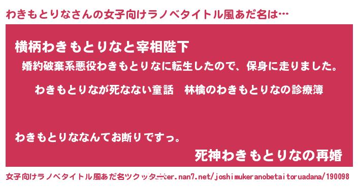 | 意味不明あだ名 | 『住所不定無職わきもとりな(86歳)』 |