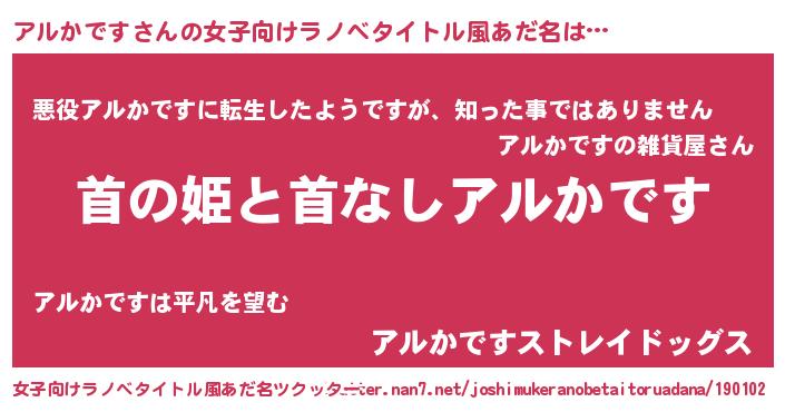 | 男性向けラノベタイトル風あだ名 | 『はたらくアルかですさま!』 |