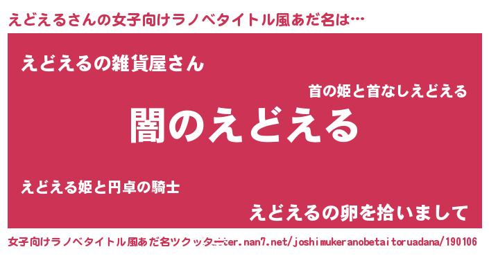 | 男性向けラノベタイトル風あだ名 | 『Re:えどえるから始める異世界生活』 |