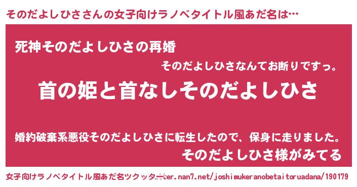 | 男性向けラノベタイトル風あだ名 | 『はたらくそのだよしひささま!』 |
